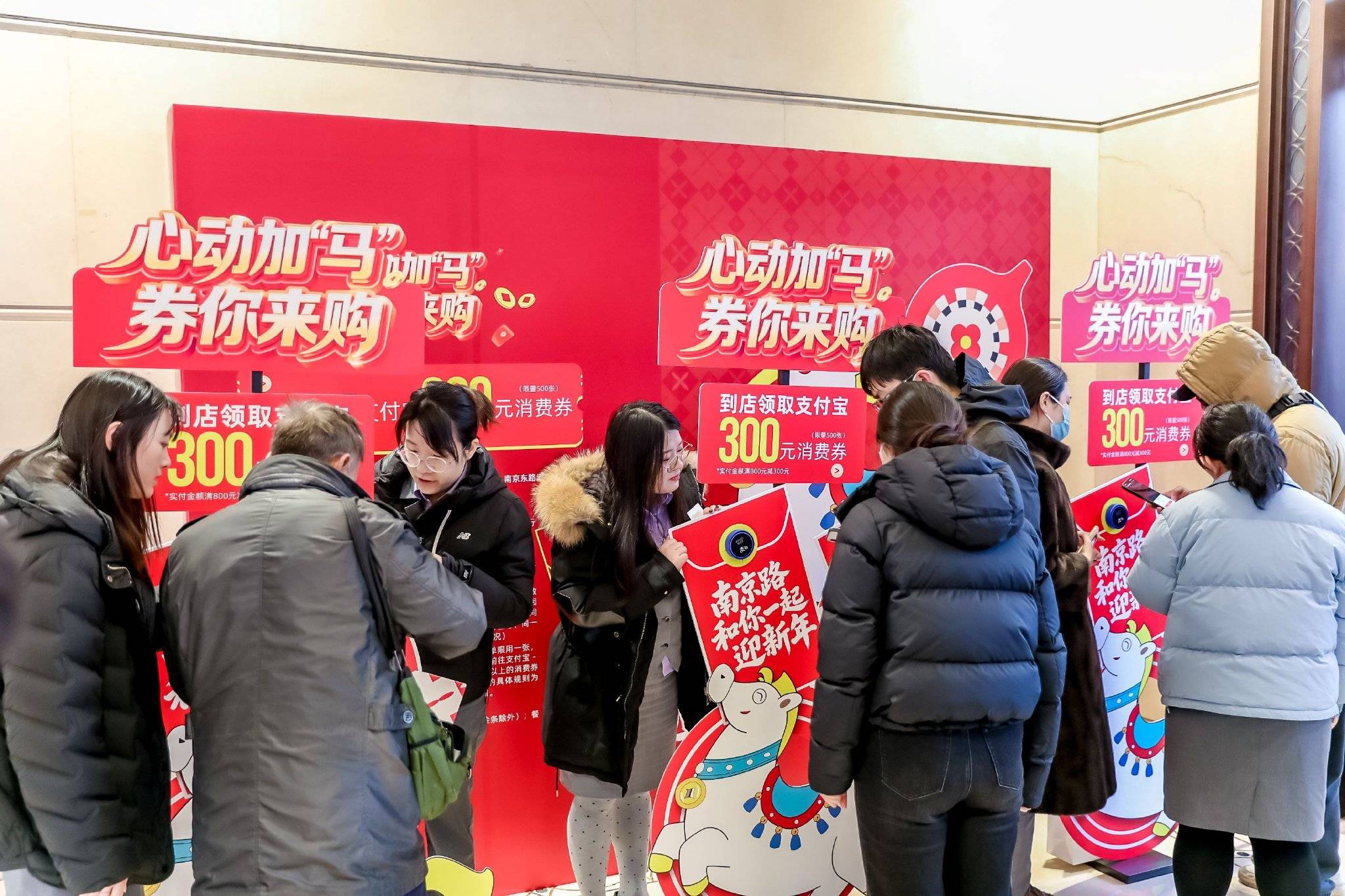 多重消费券叠加的实惠福利成为拉动消费的重要引擎,黄浦元旦消费券、“南京路和你一起迎新年”线上线下消费券与商场自有优惠叠加,让消费者尽享实在优惠。12月31日上午8点不到,商场门前已排起长队,市民争相参与“碰一下”活动领取支付宝“满800减300元”消费补贴券,500张限量名额迅速售罄,提前点燃跨年消费热情。