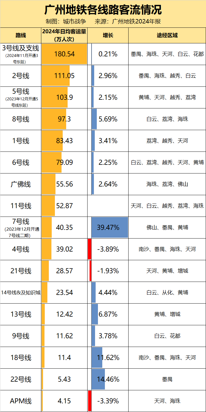 换句话说,“苦广州人久矣”的3号线开始示弱,数据也在印证这一点,2024年,3号线%,大幅低于全市平均增速(3.58%)。