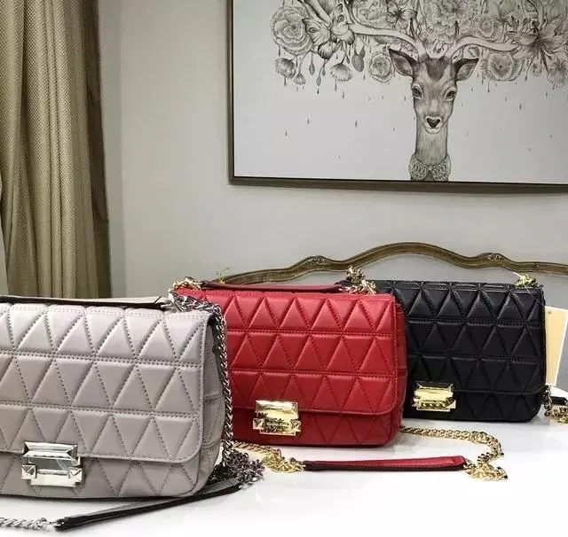 4,MK新款Sloan羊皮链条包,注意咯,是三角车线不是菱格车线,锁扣由圆形扣头换成了今年新的的方形扣头,中号的容量更能满足秋冬。